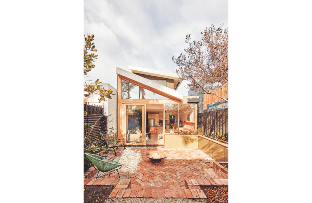 While the home’s presence from the street was important, it was the reconfiguration of the floorplan to allow the living space to open to the backyard that drove the overall design. To achieve this, the bathroom and laundry was moved from the rear to a central location, and the unique 10-fold roof design