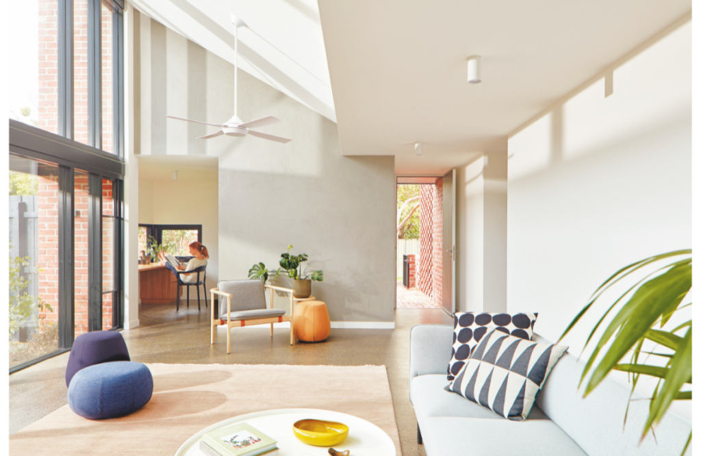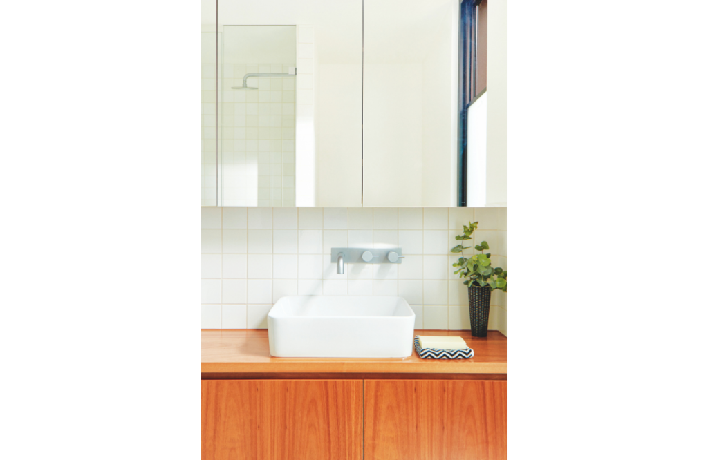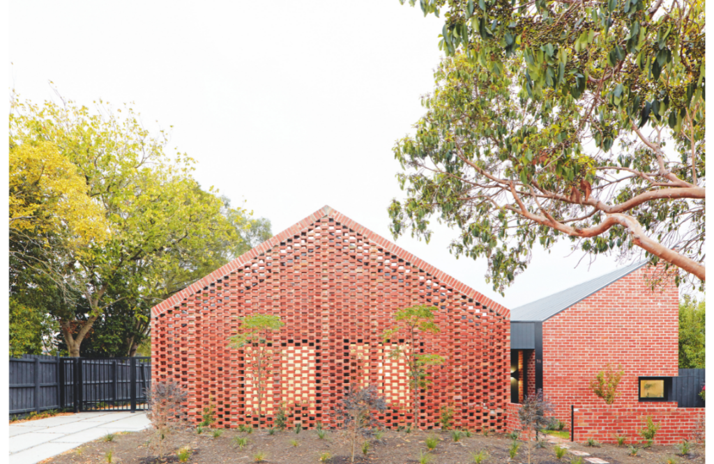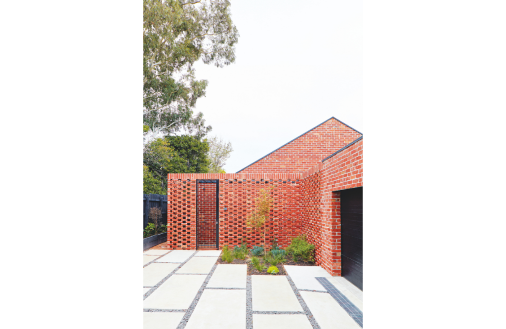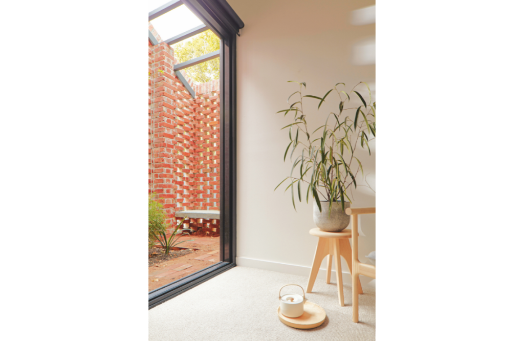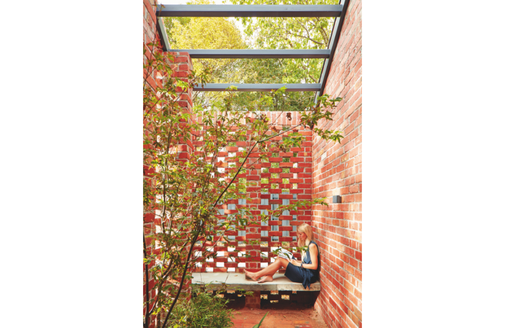 Every room has a connection to the outdoors, with a series of hit-and-miss brick screens that provide privacy for smaller courtyards and draw in air and dappled light. The home’s materiality was guided by its rental status, so finishes are durable and low maintenance. Recycled and locally sourced materials were used where possible, including timber benchtops, timber decking and all external brick work. “Polished concrete flooring also contains recycled content and all applied finishes are low-VOC,” says Breathe Architecture.