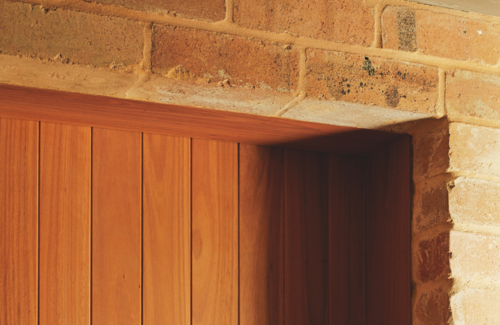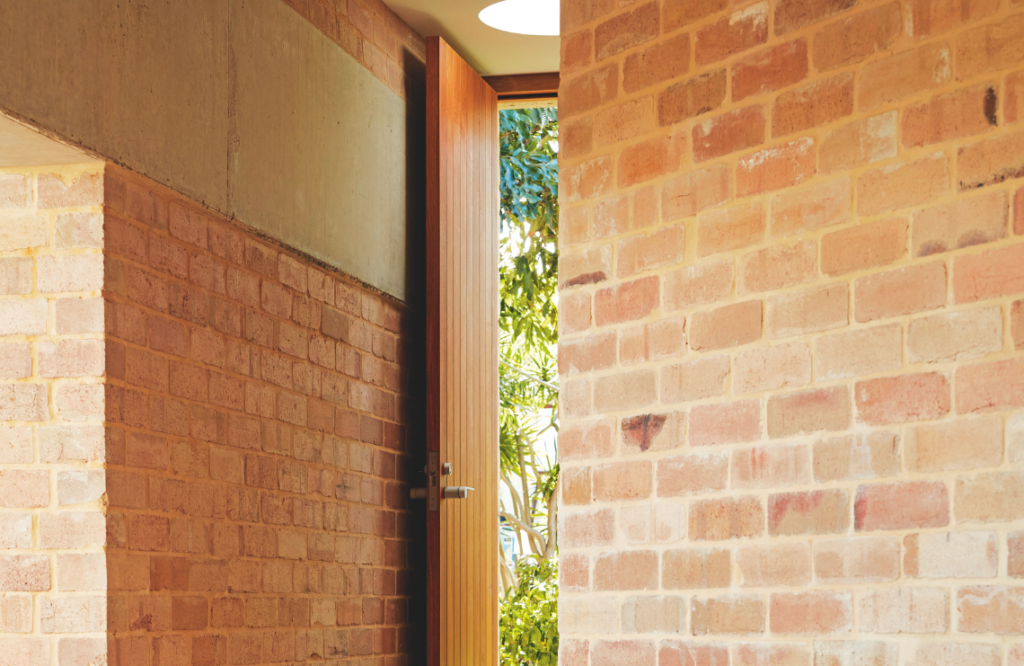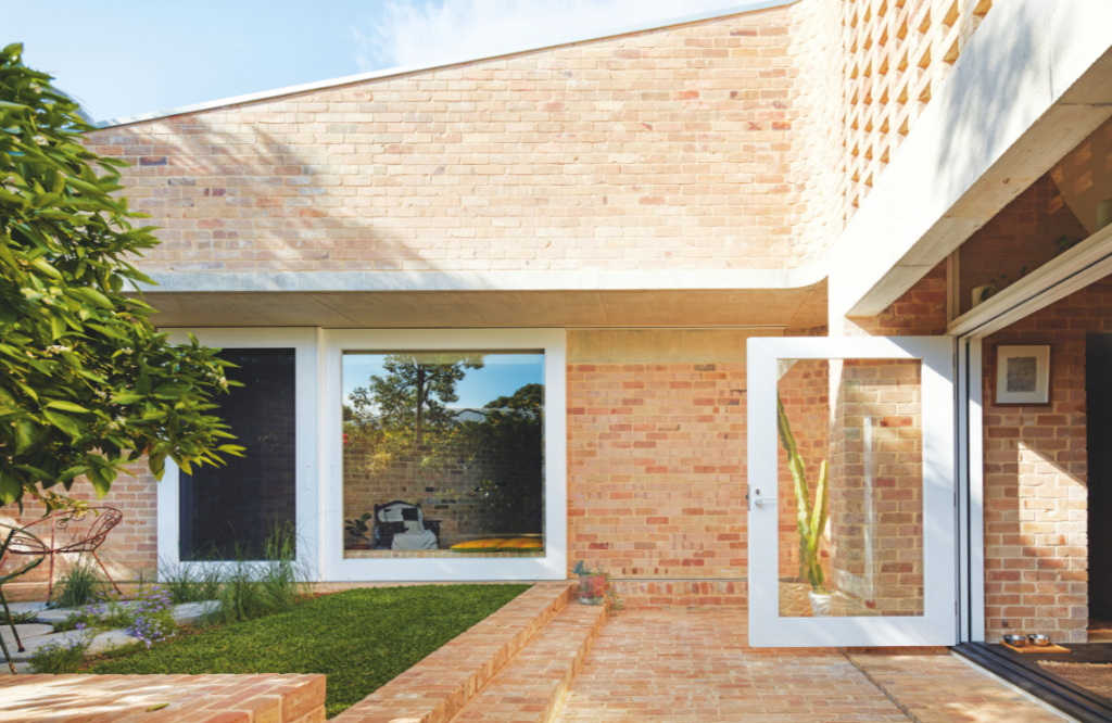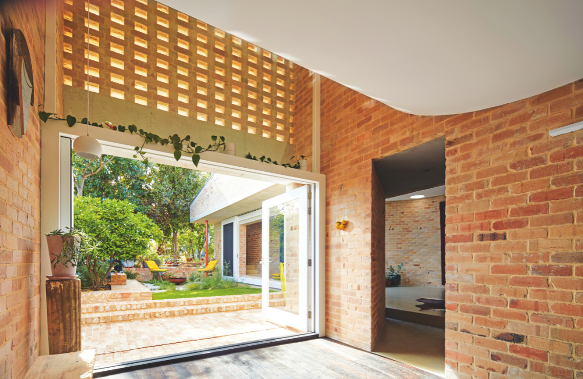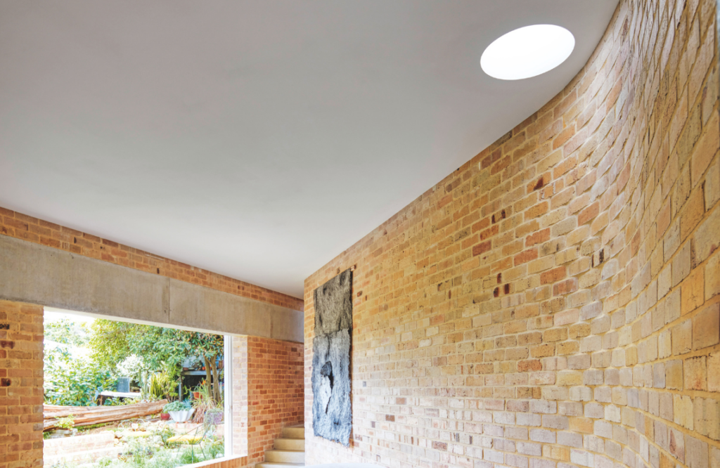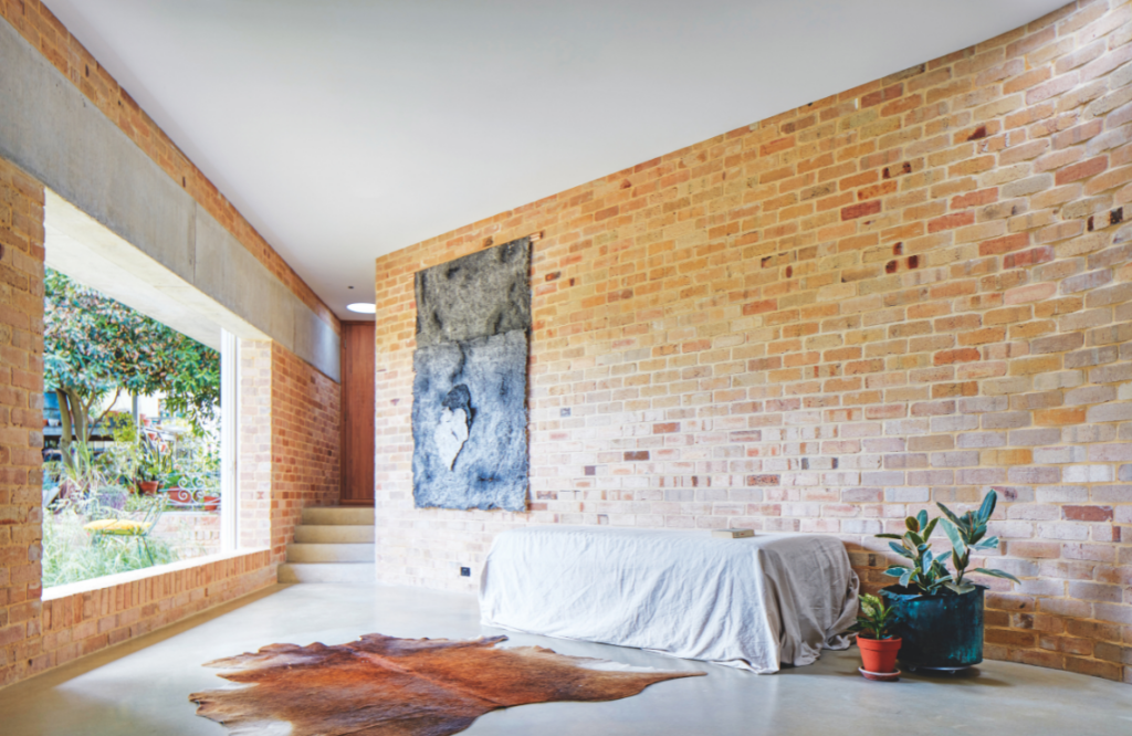 Brick was chosen as the principal material for the project due to its “sheer mass and consistency”. While brick provides a raw and organic presence, the team also considered its technical advantages, including its thermal properties. They used Blackbutt for doors and door frames, contributing to the “soft and somewhat monastic” palette. A surprising immersion of intense colour in the master bedroom might feel overwhelming, but its hue instead remains comforting and peaceful.