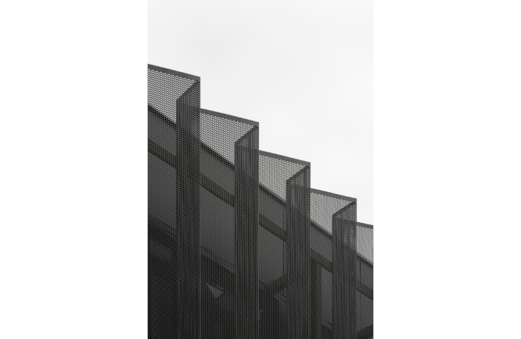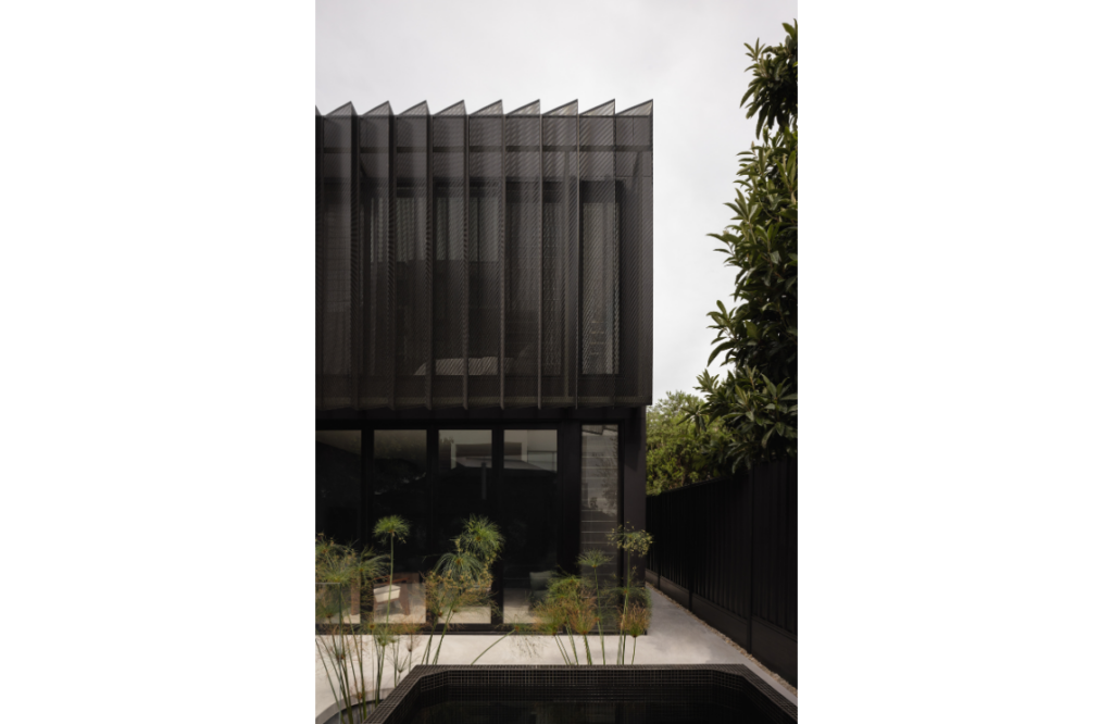 The extension is a simple rectangular box clad in black. The materials include black CFC, black bricks and a black permeable screen. “From the rear elevation we wanted something a bit sexy to complement the sleek and sophisticated interiors designed by Nickolas Gurtler,” says Lauren. The black screening also offers privacy from the four-storey apartment building that looks directly at the house. “At night the intent was for the first floor to act as a lantern and provide dappled light to the garden below,” says Lauren.