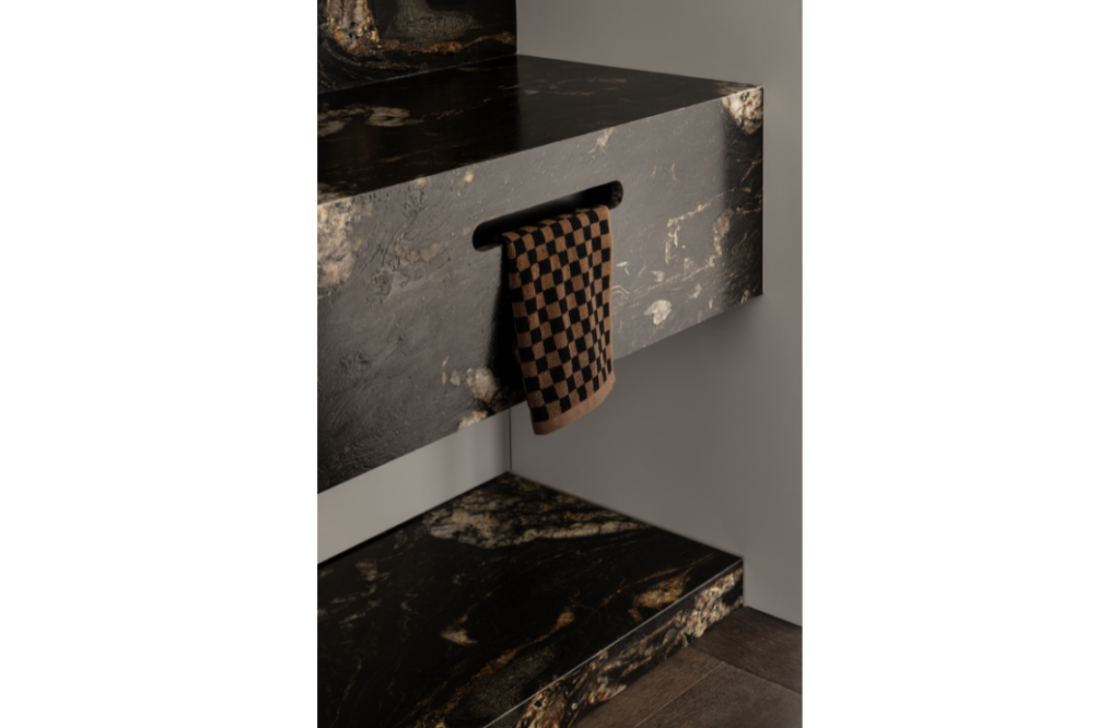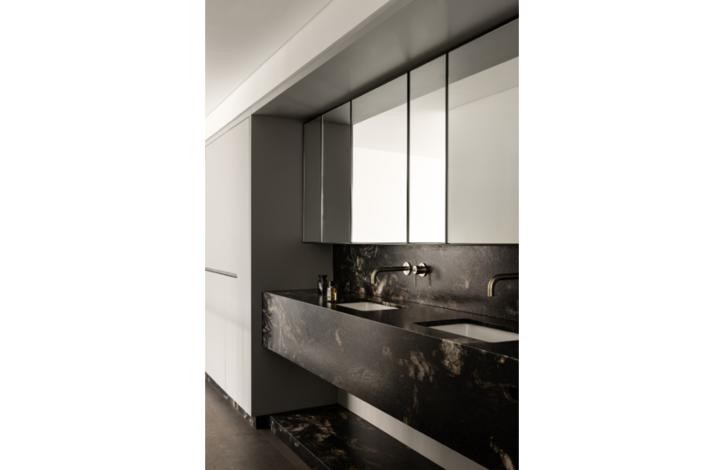“Up the stairs, the ensuite vanity has been pulled out to the corridor to make the most of the natural light of the void, which allowed for a larger wet room and double shower in the ensuite,” she explains.