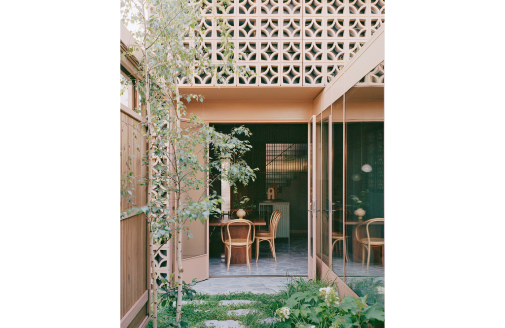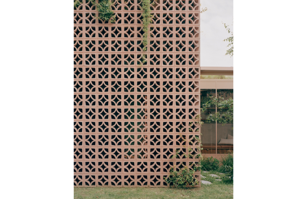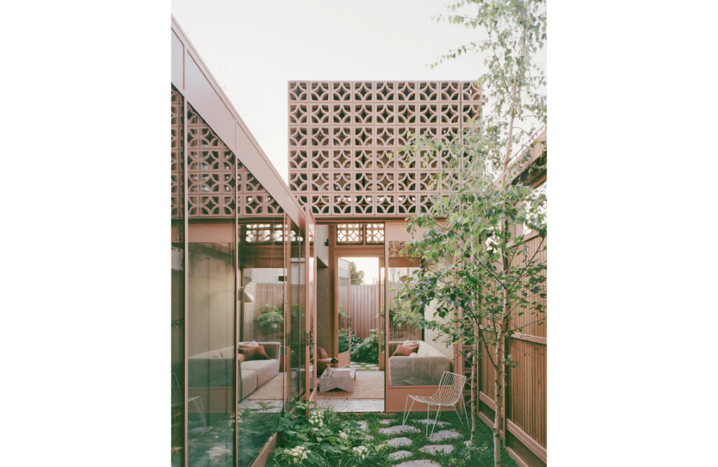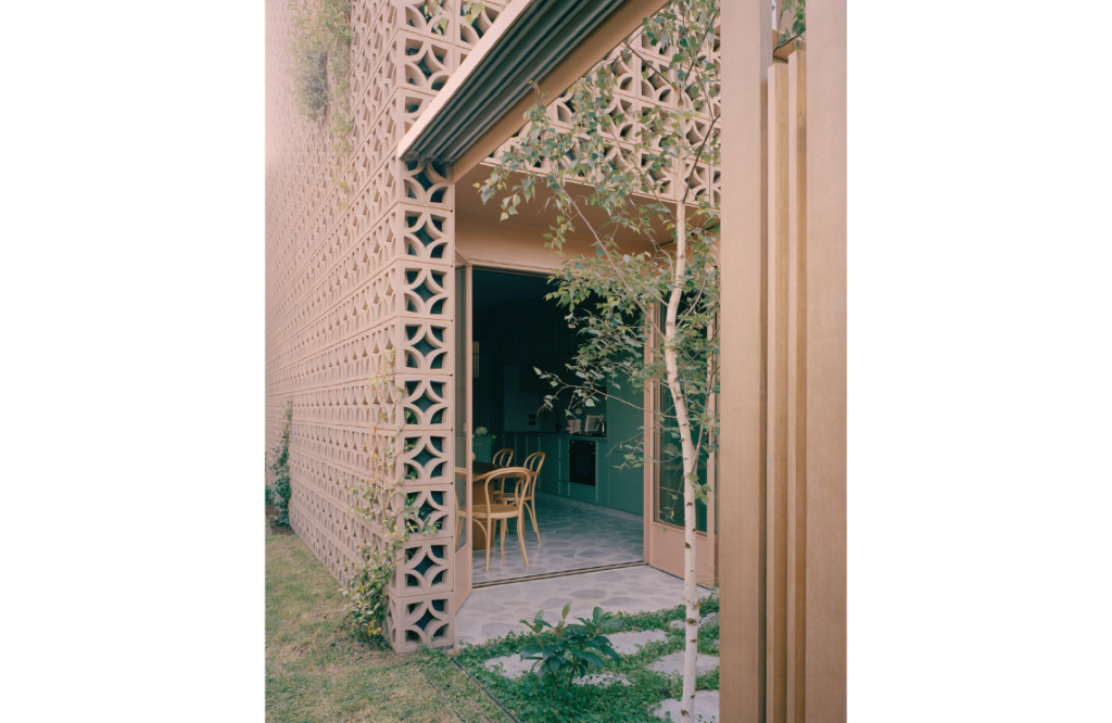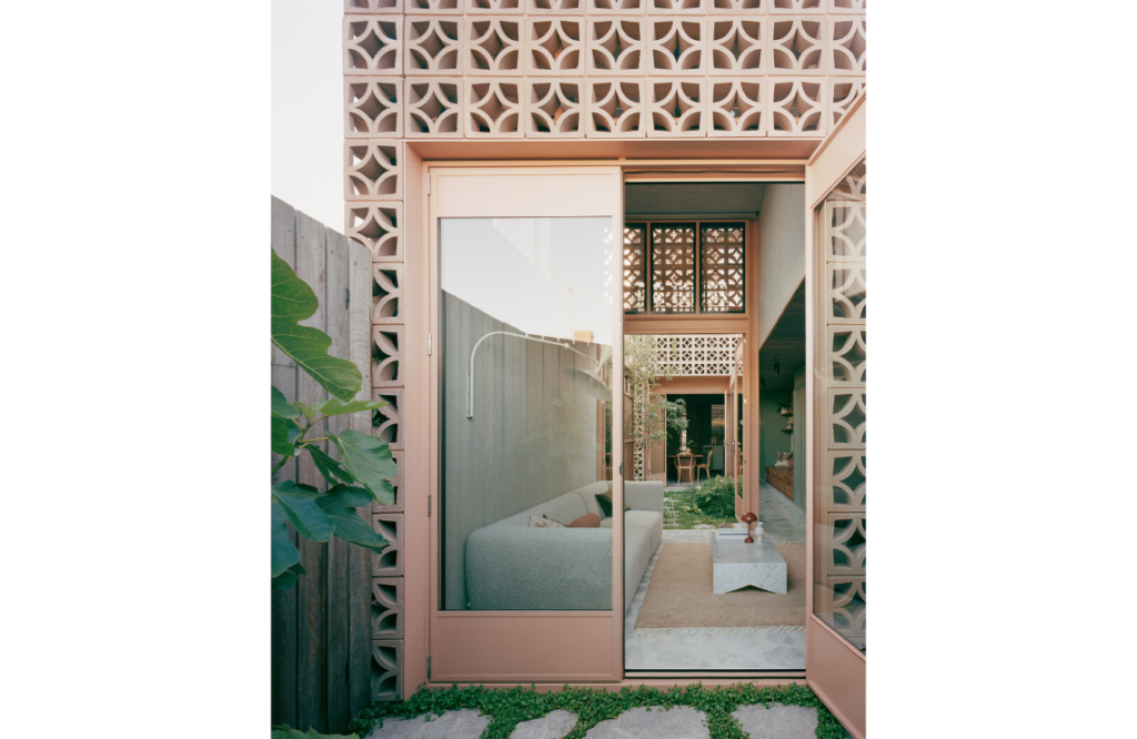 A light-filled family home by Studio Bright extension clad in subtle blush breezeblock forms a delightful urban haven for those who live there.