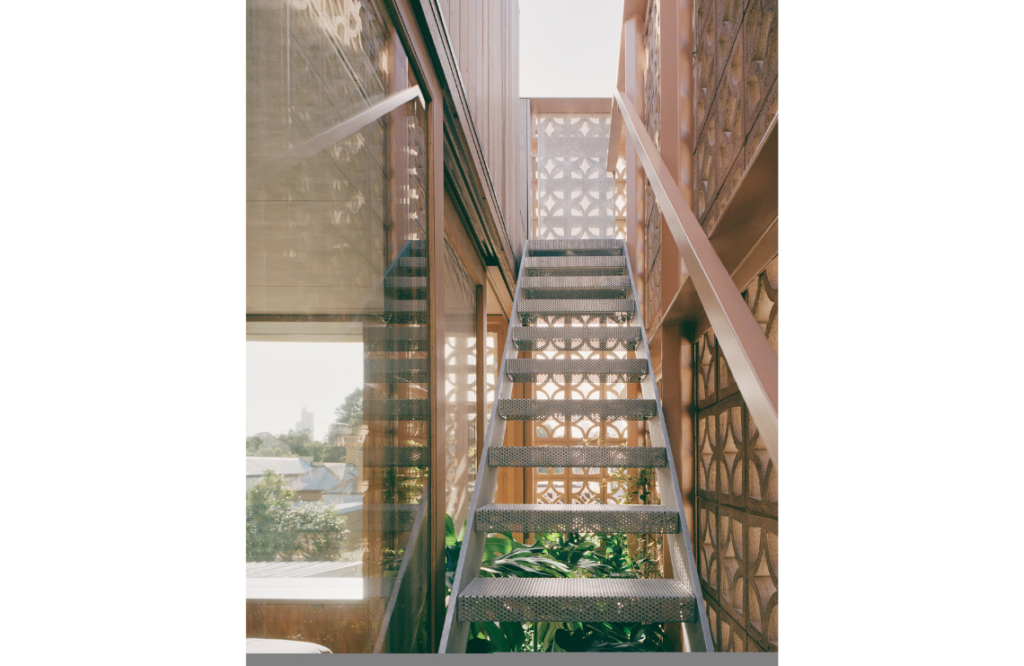 Given the small space to work with, this meant privacy, natural lighting and outlook all needed to be addressed. The design intent was to create a home that didn’t feel small or cramped, one that would harness light and green spaces. The solution benefited the family, and the outlook would also off er a leafy visual landscape to neighbouring properties. “The ‘backyard’ is reimagined in a dense urban environment, with courtyards, lightwells, rooftops, vertical facade planting and laneways all contributing to the full family brief,” says Melissa.