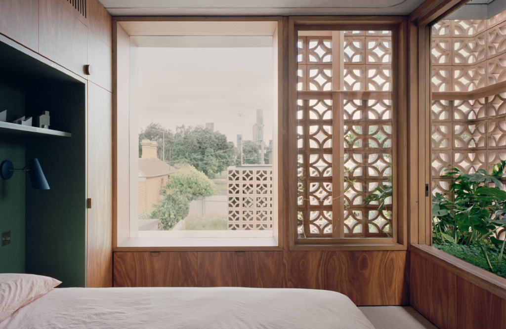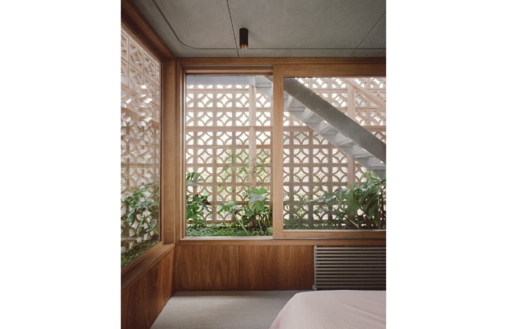 Eco-friendly elements include the breezeblocks, which were sourced locally. They require minimal maintenance and were chosen with longevity in mind. Timber panelling was sourced from sustainably managed forests. Local makers and designers also contributed to the project. Other sustainability measures were included, and a water tank, solar panels, garden spaces and a green roof feature.