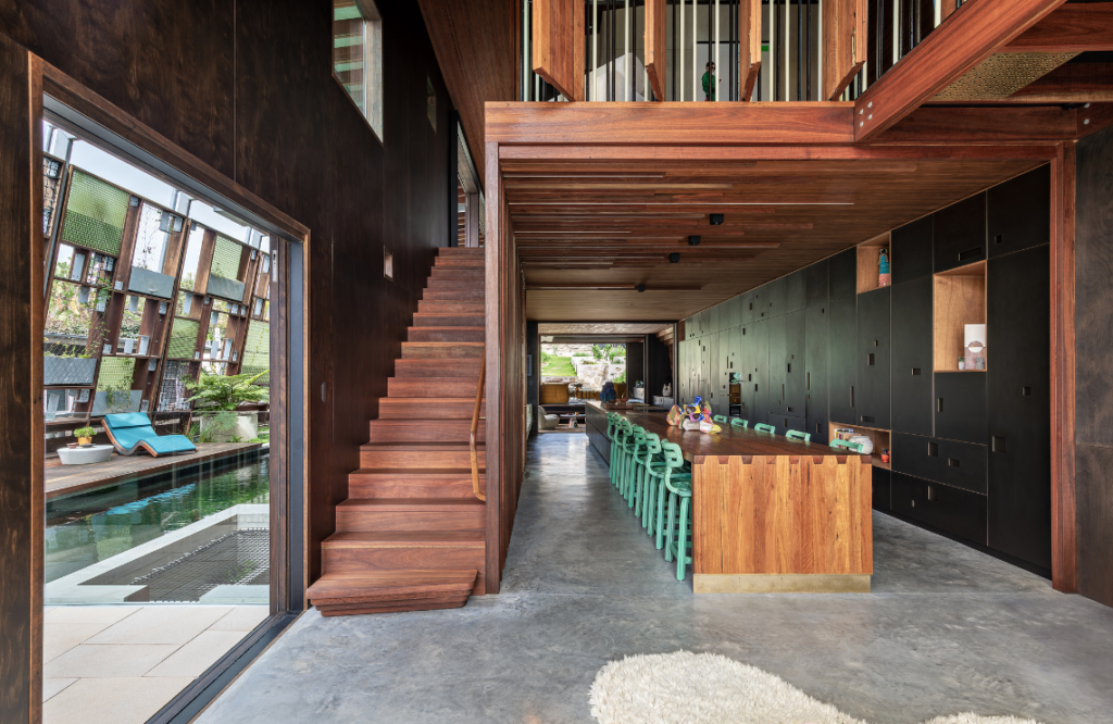 “When we asked the clients how they wanted the house to feel, they told us about walking knee deep through Eli Creek on K’gari. Light bouncing off the water. Leaves dancing off the top of the trees. How can you not get excited?” he says.