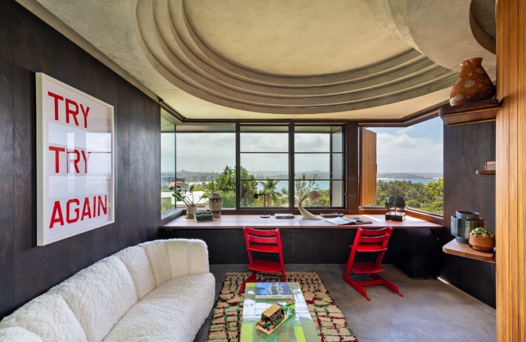 A curved ceiling is a work of art, it draws the eye in this workspace