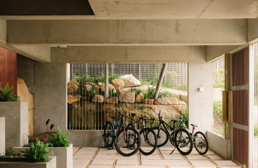 The exterior of the house is clad in spotted gum hardwood shou sugi ban, a Japanese method of pre-charring the timber. It also meant the dwelling achieved a Bushfire Attack Level (BAL) rating of 29, which was essential.