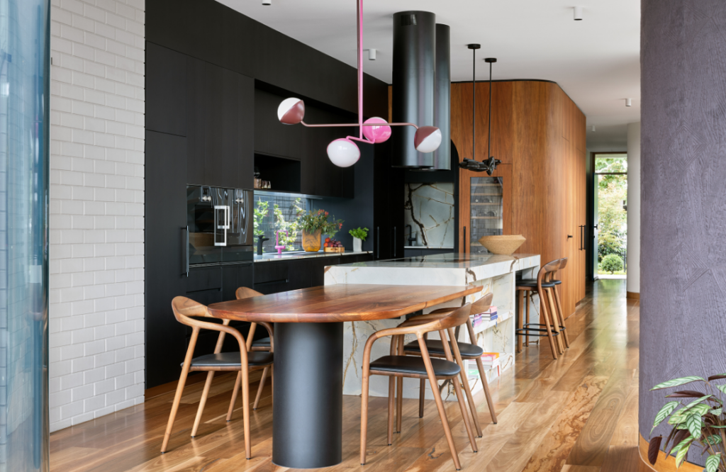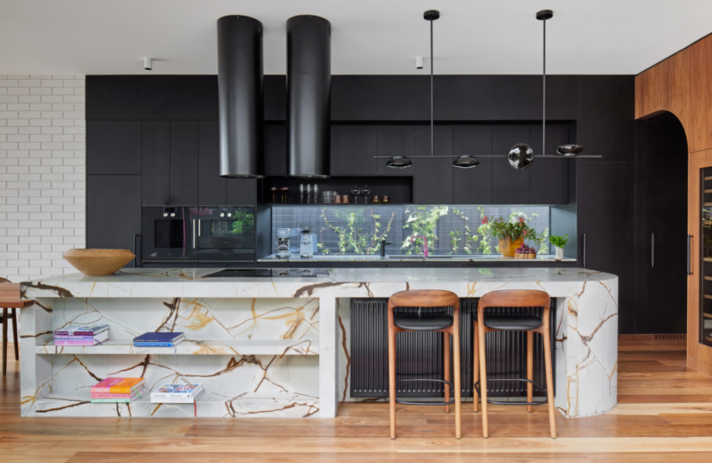 Yvonne says Maree was looking for a home that would “spark joy” in their daily lives. “There is dramatic curved stone, warm timber finishes, moments of surprise and unexpected combinations of texture and colour,” she enthuses.