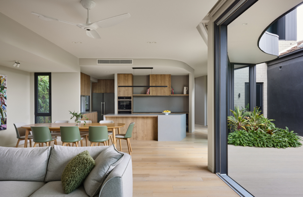 This project ably took on the challenge of site constraints and planning frameworks. “Rather than forcing a conventional design onto an unconventional block, the architecture embraces the irregularity of the site and turns constraint into opportunity,” explains Aaron.