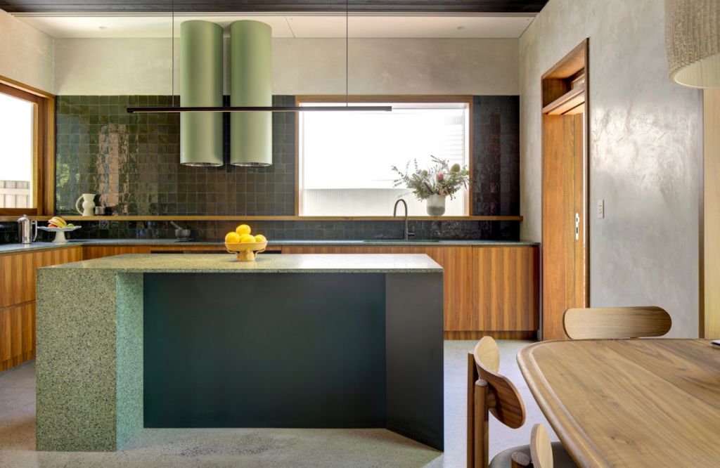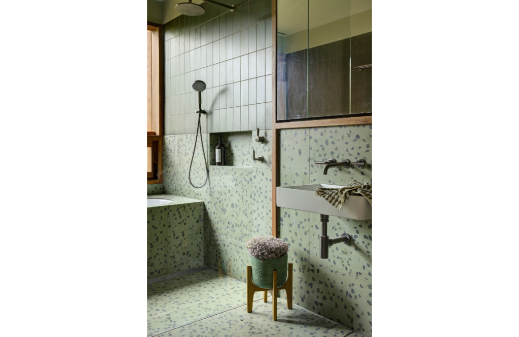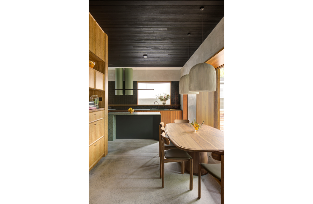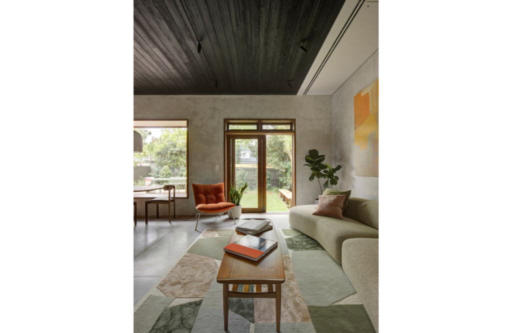 Charly Watson, associate project architect, says the design brief centred on enhancing the existing connection with the outdoors. “They wanted the ability to stand in the centre of the house and look in multiple directions to greenery,” she says. The leafy tree-lined street and its surrounds inspired the design. “The street and its site enjoy a lush, verdant greenery that we wanted to champion and connect to throughout the home,” says Charly.
