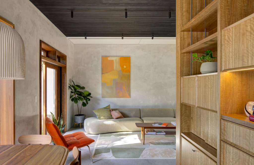 The existing home was a 1950s circa modest brick bungalow and its occupants, a family of four, were running out of room. Sam Crawford Architects stepped in and designed a series of beautiful, warm, inviting spaces that offer opportunities for the family to connect, and also to retreat to.