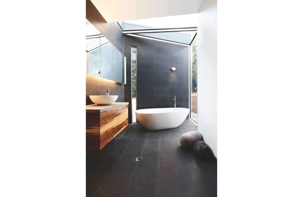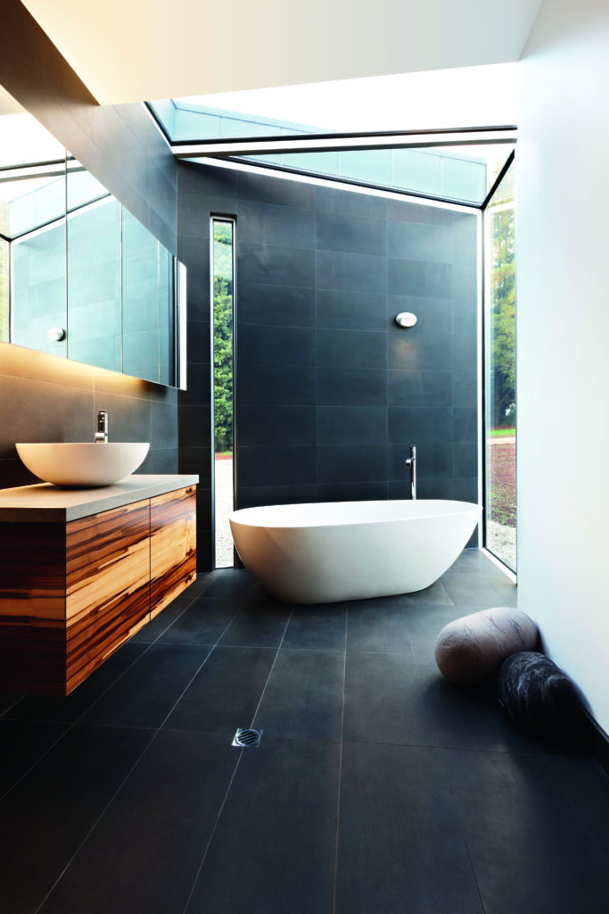 Thermal comfort has been addressed with double-glazed windows as a safeguard against ever being cold. There’s a choice of hydronic floor heating, reverse-cycle heating or the sculptural wood-fuelled Oblica fireplace.