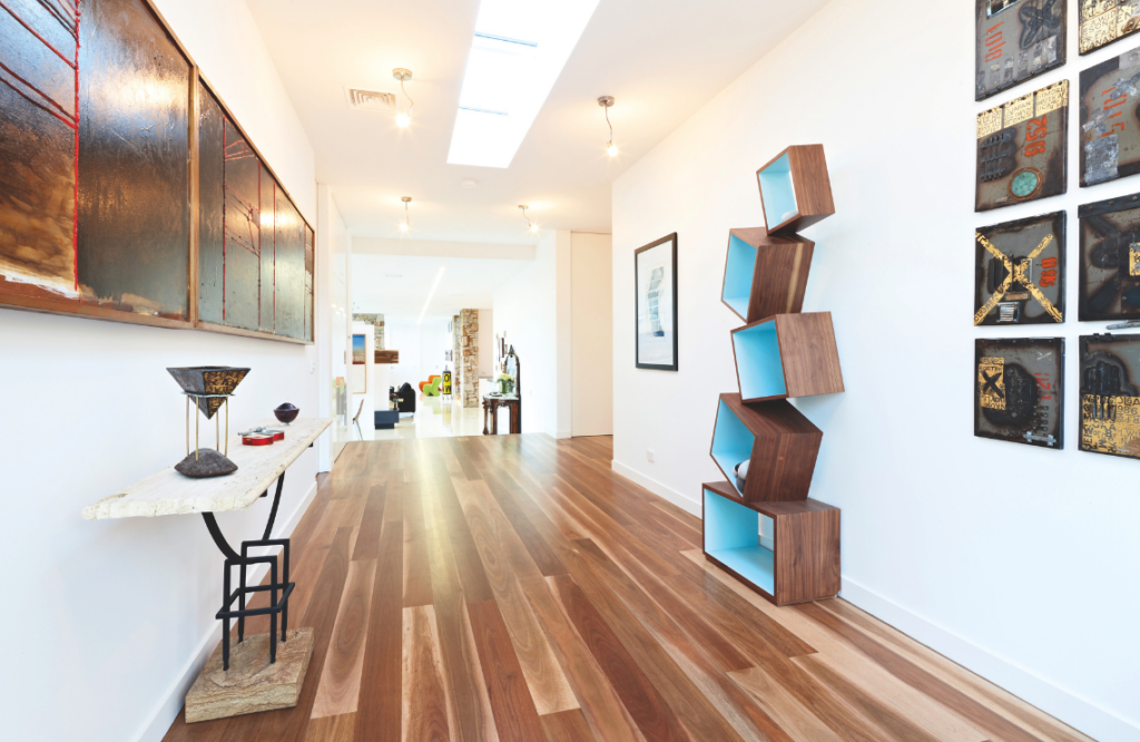 Unused corridors were never an option for Renee and Laurie who were committed to effective and efficient use of space. Each of the three bedrooms opens onto a spacious gallery area that proportionally, at 3m × 7m, is its own entity. The carryover of having a gallery in their previous home in one sense makes Yellingbo “an update of our gallery space,” says Laurie.