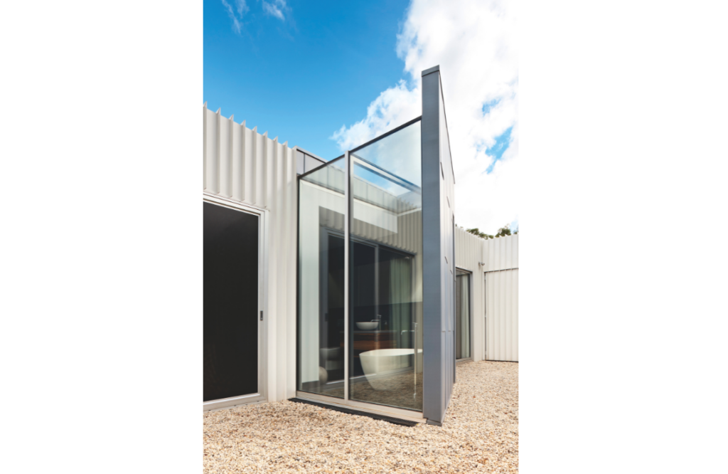 After the couple renovated the bathroom and kitchen, Laurie personally fitted out a 10-square pole-frame extension, complete with cedar-lined hardwood floors and exposed trusses with steel bracing. “That one was over-engineered,” he reflects. “It was very much in the brown zones of the ’70s and ’80s, so the new home was always going to be contemporary and modern and light.”